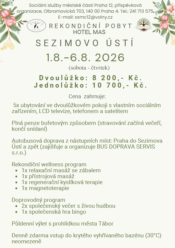 Veškeré informace k letním rekreacím Vám rád zodpoví každé úterý Ondřej Mazurka na tel. 222 250 852 od 13-15 hod. od ledna do dubna 2026.